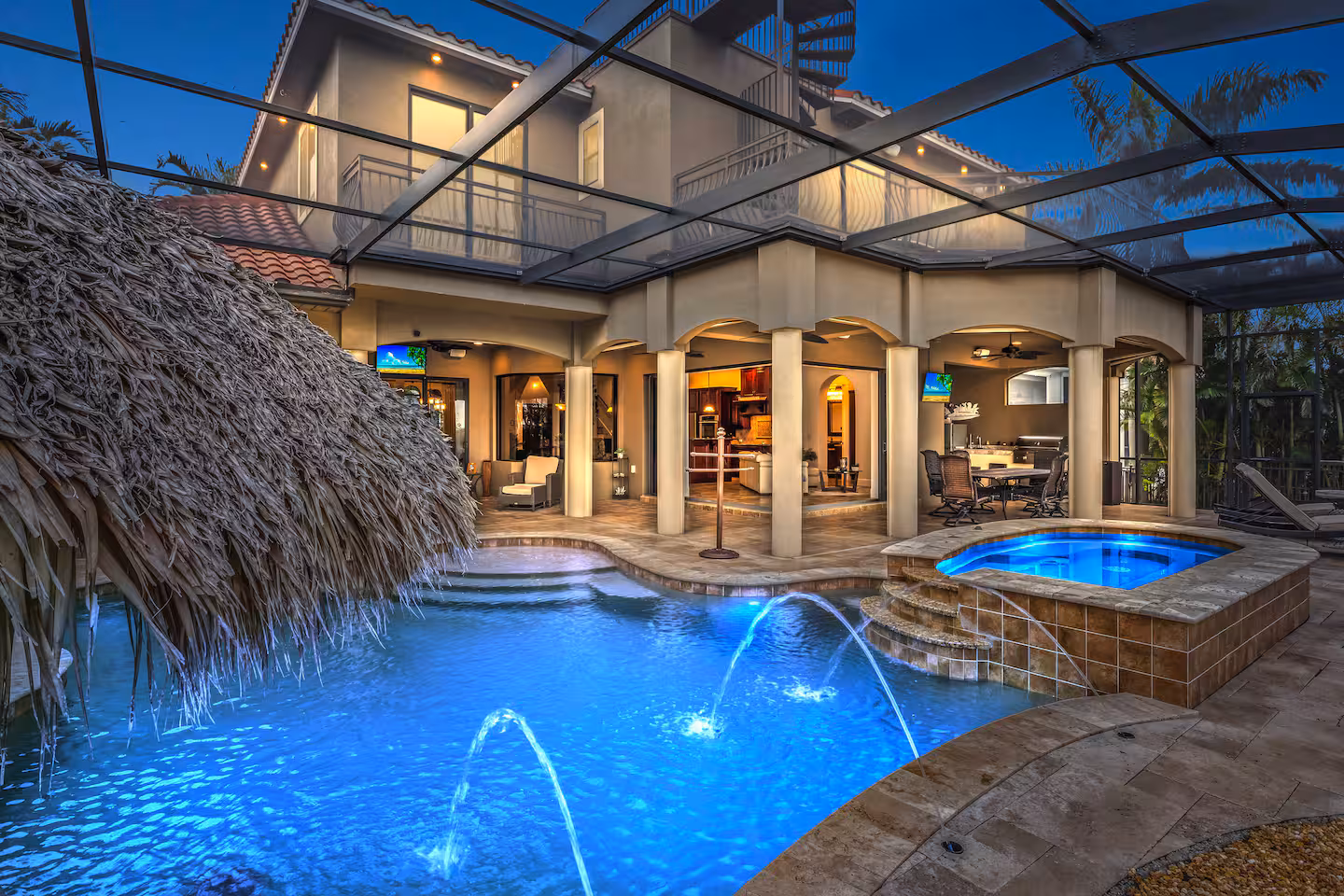 This beautifully updated 5-bedroom, 4-bathroom home offers room for up to 15 guests, complete with a private inground pool, hot tub/spa, outdoor grill, balcony, and multiple indoor/outdoor gathering spaces.
